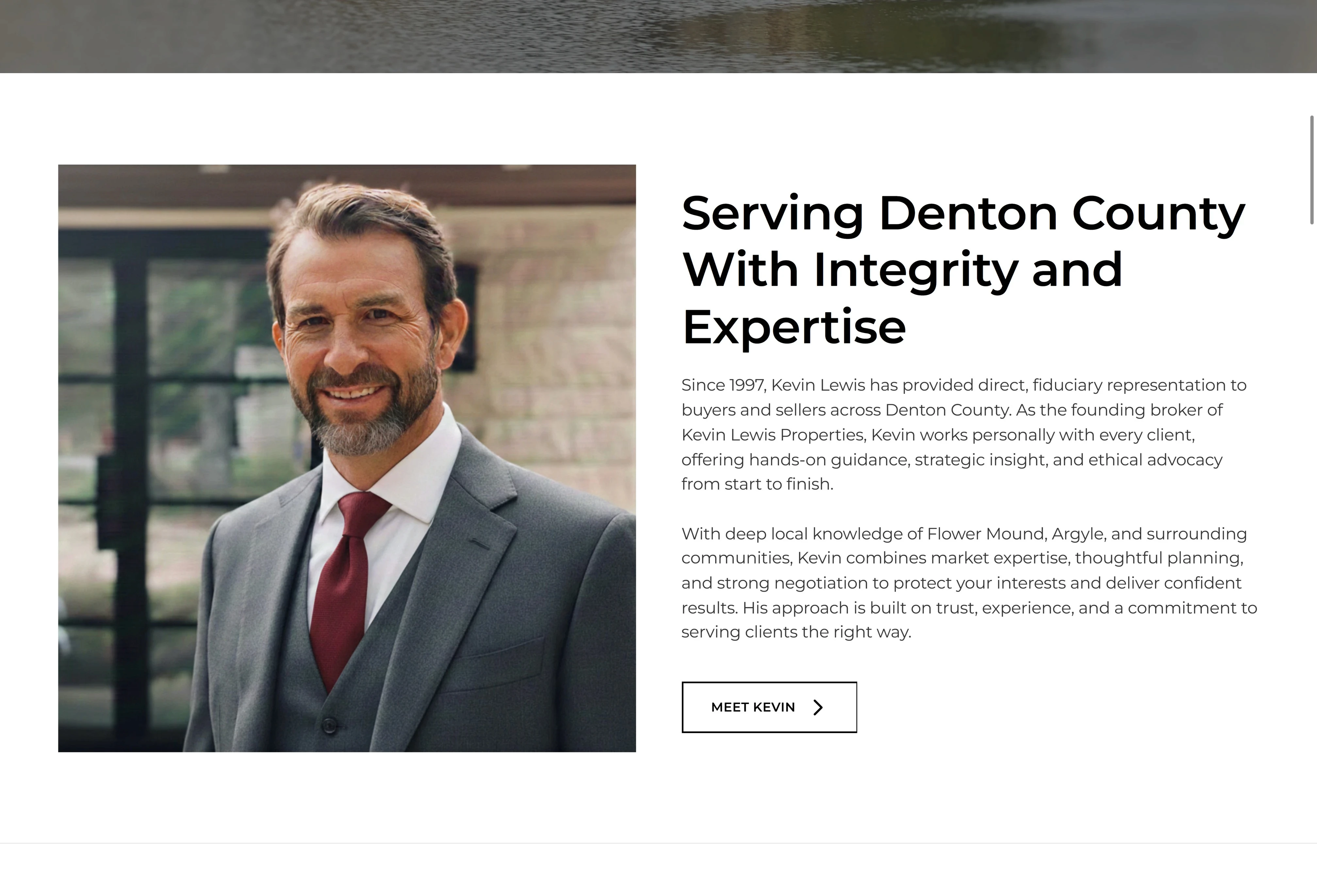 Helped Kevin, a Denton, Texas based realtor, redesigned his outdated website into a premium website that positioned him as a top player in Denton and neighboring communities real estate market.