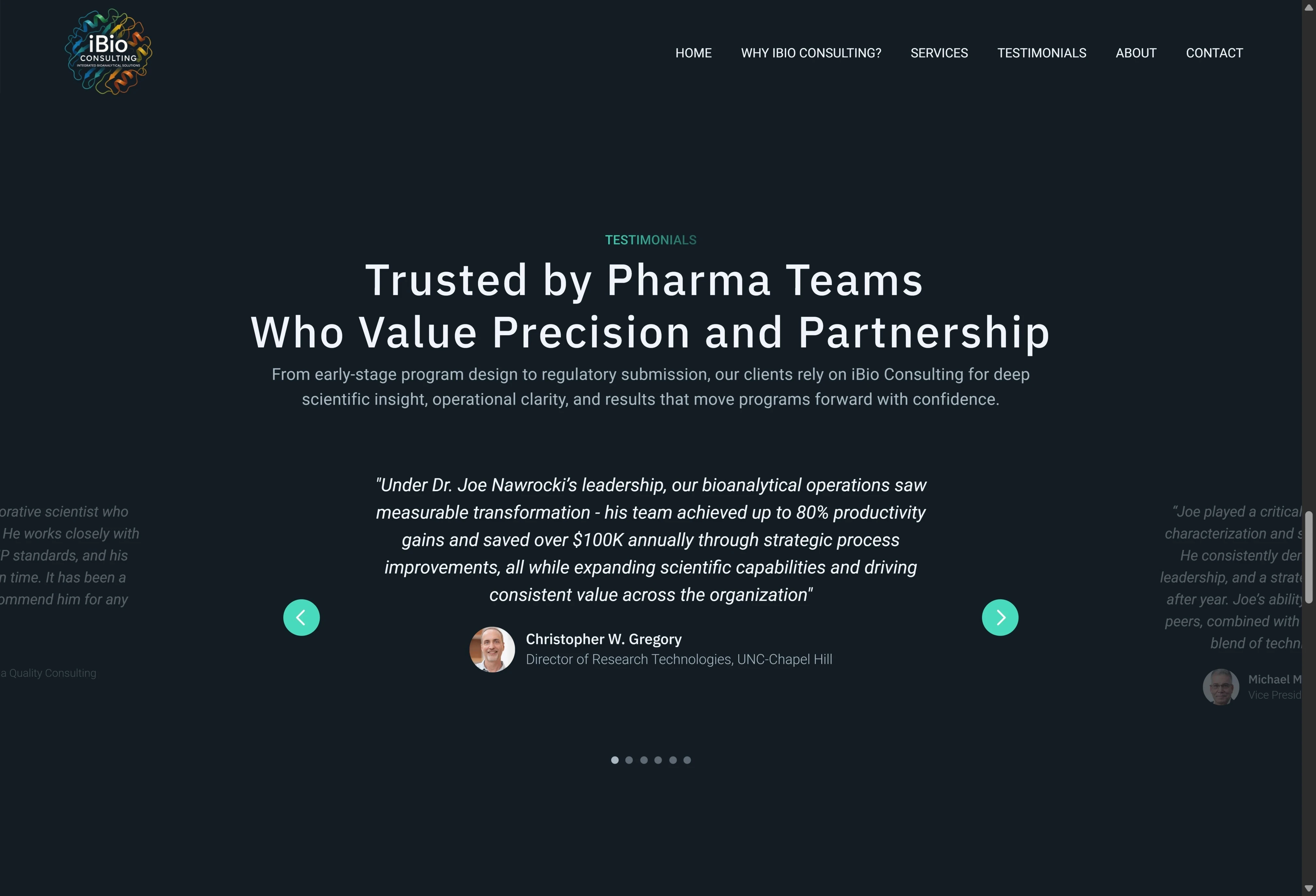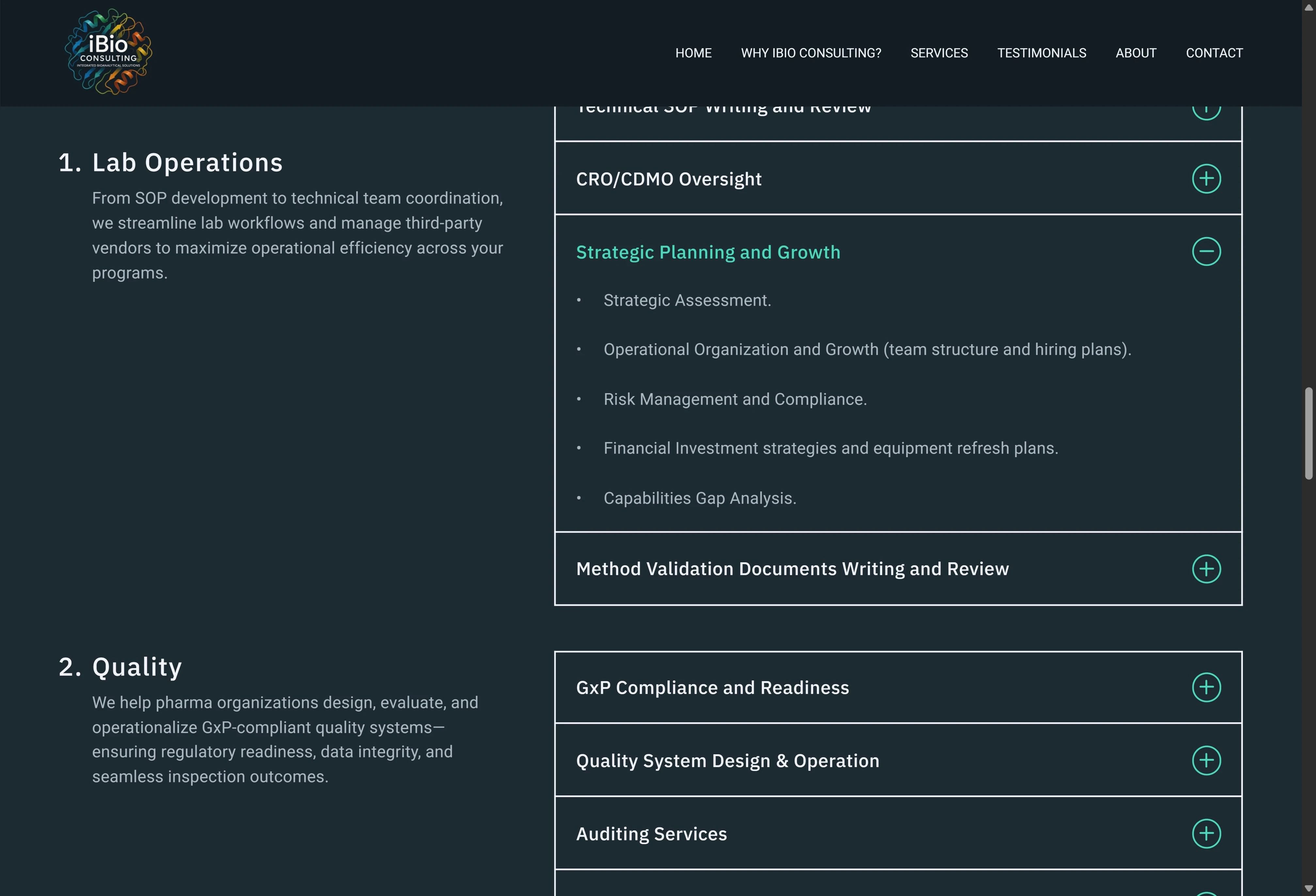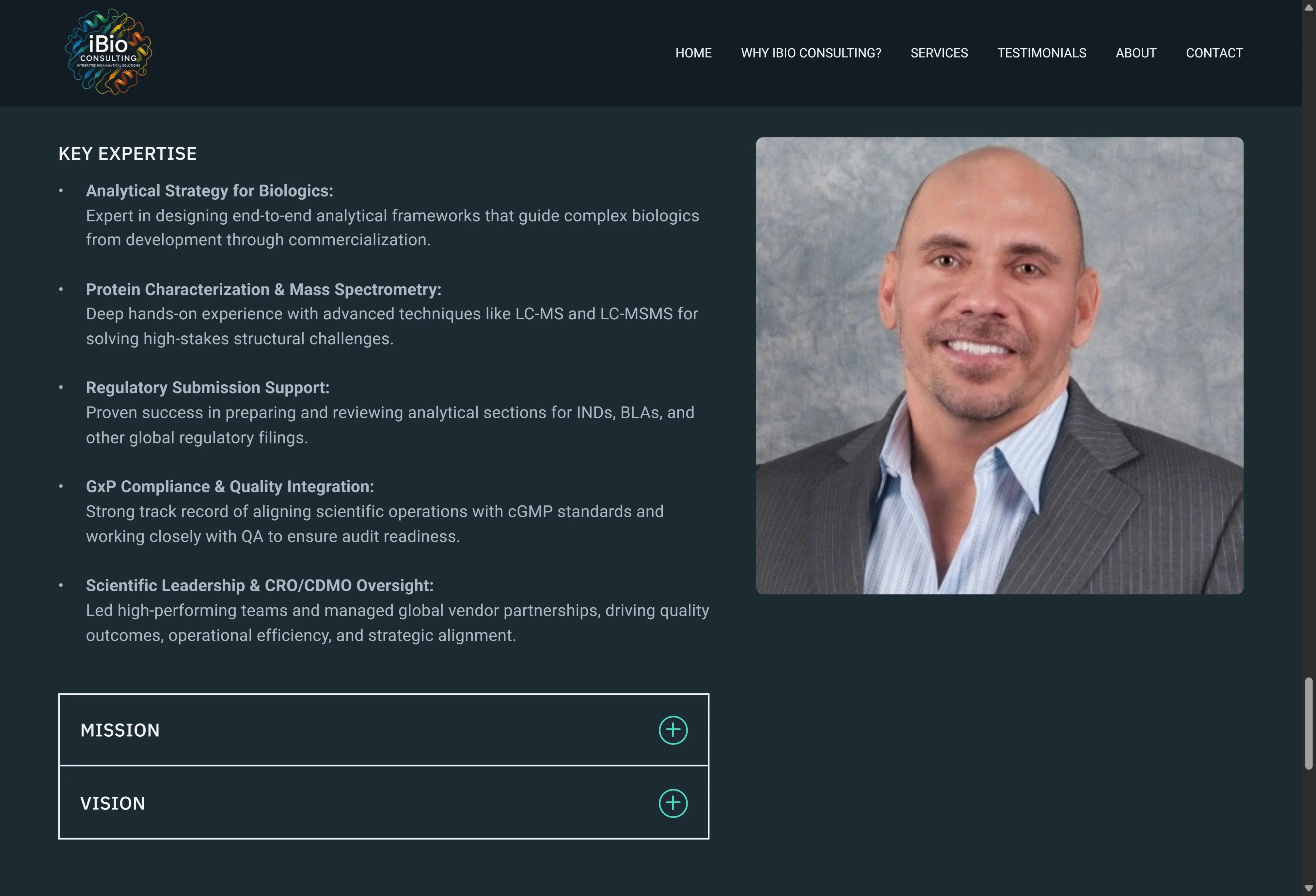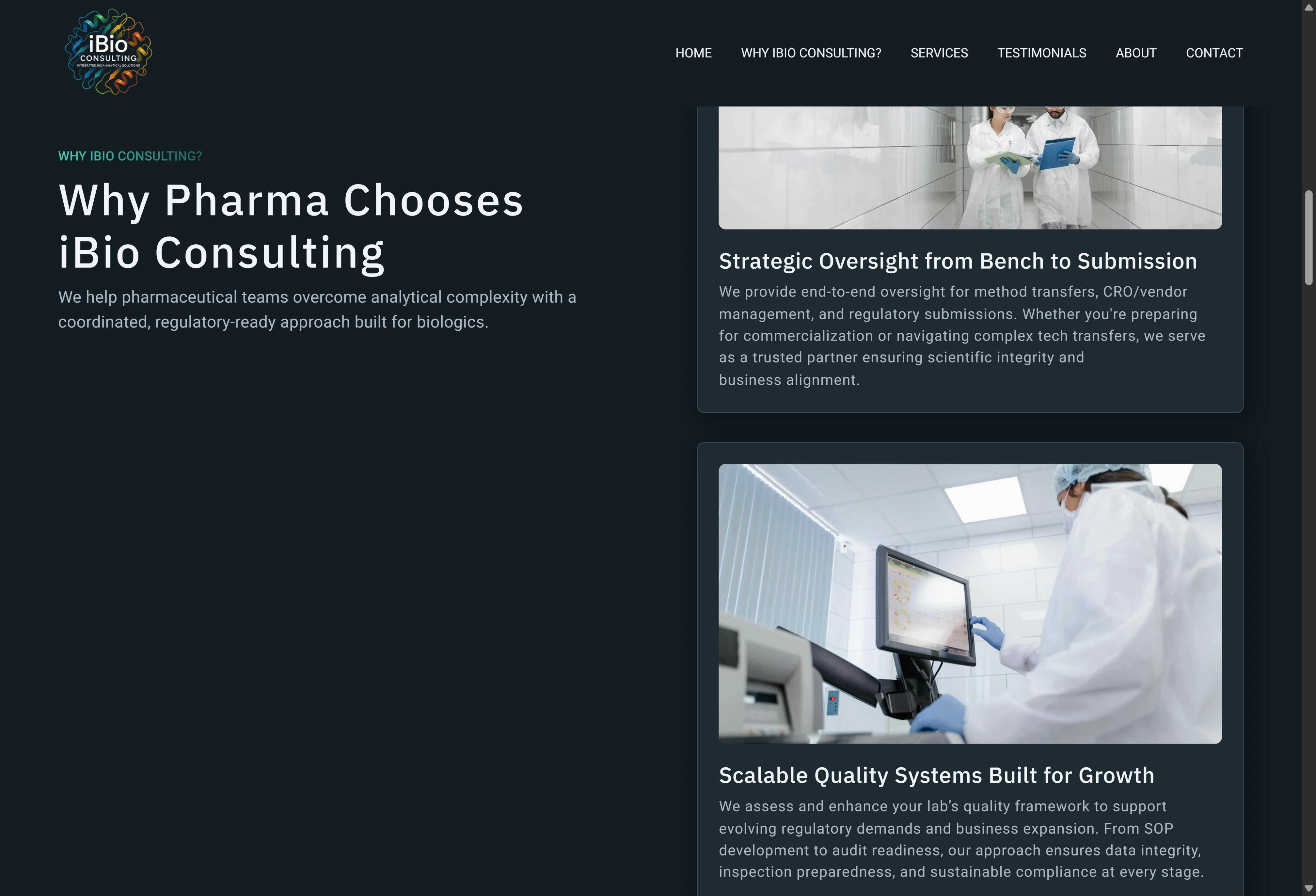Helped iBio Consulting transform its outdated website into a credible, modern platform that builds trust with pharma and biotech clients.